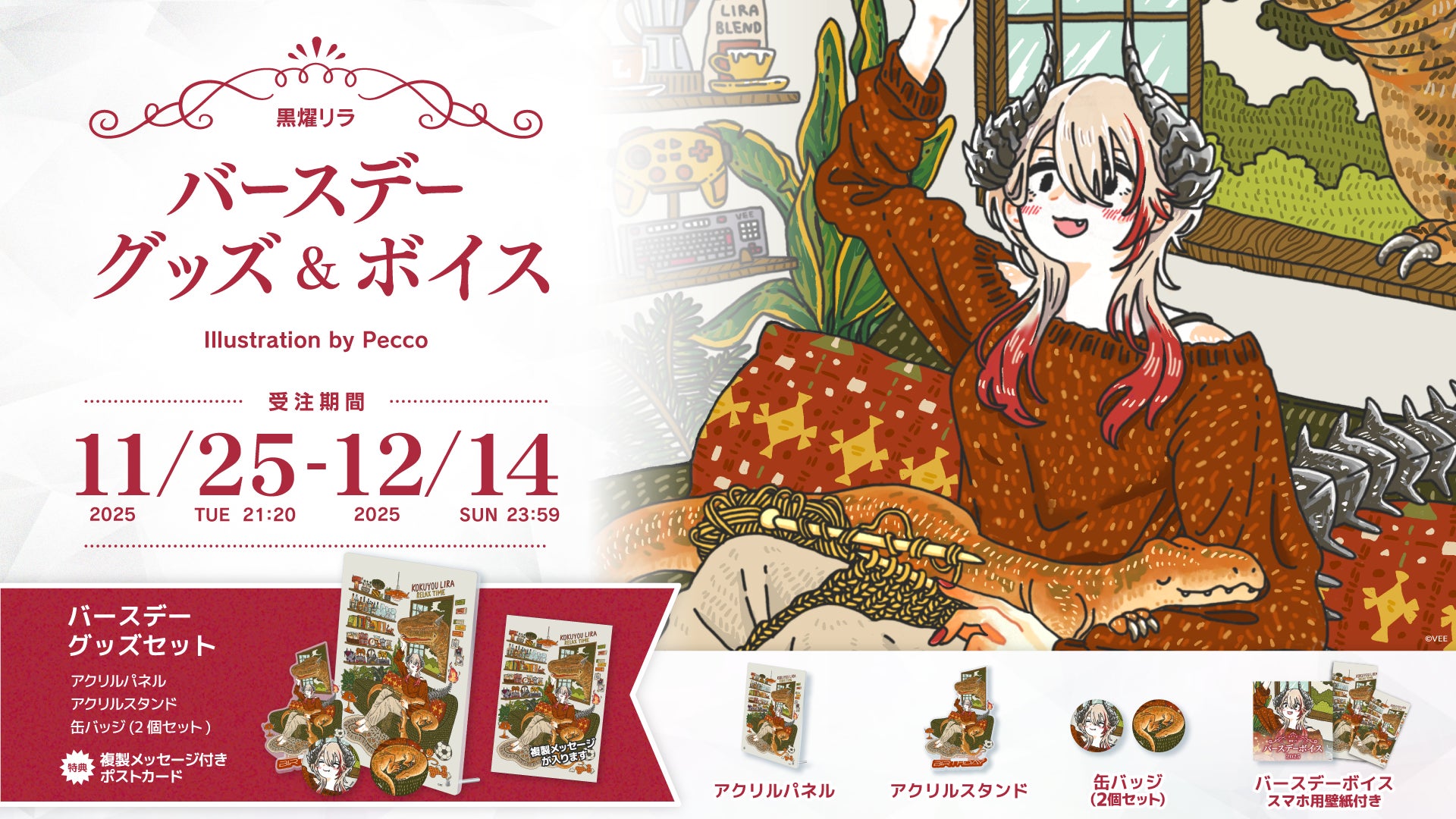 Sony MusicによるVTuberプロジェクト「VEE」、所属VTuber「黒燿リラ」のバースデーグッズ&バースデーボイス... 株式会社ソニー・ミュージックエンタテインメントのプレスリリース(2025年11月25日 21時20分)Sony MusicによるVTuberプロジェクト「VEE」、所属VTuber「黒燿リラ」のバー...